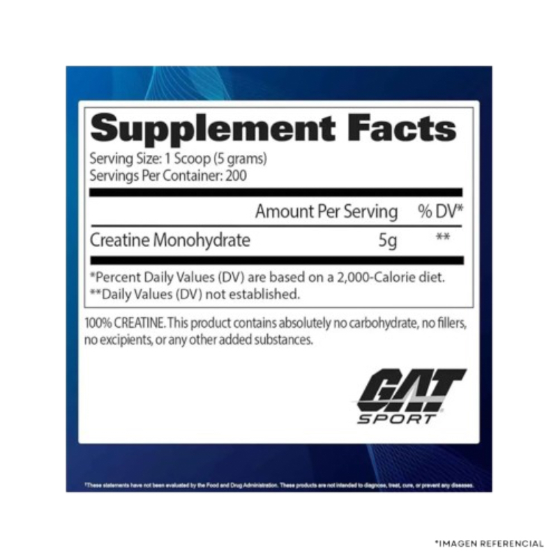 - Gat Sport Creatine está hecho con monohidrato de creatina micronizada 100% pura, uno de los suplementos más investigados y efectivos. La fórmula micronizada garantiza una absorción rápida, una mejor solubilidad y la máxima eficacia, apoyando el rendimiento, la resistencia y la recuperación rápida.