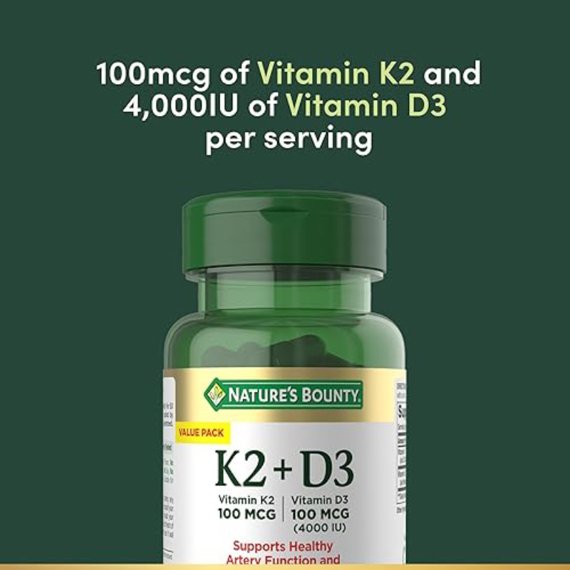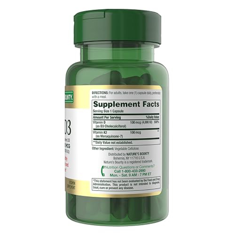 Nature’s Bounty Vitamina D3 + K2 combina dos nutrientes fundamentales que trabajan en sinergia para apoyar múltiples funciones del organismo.