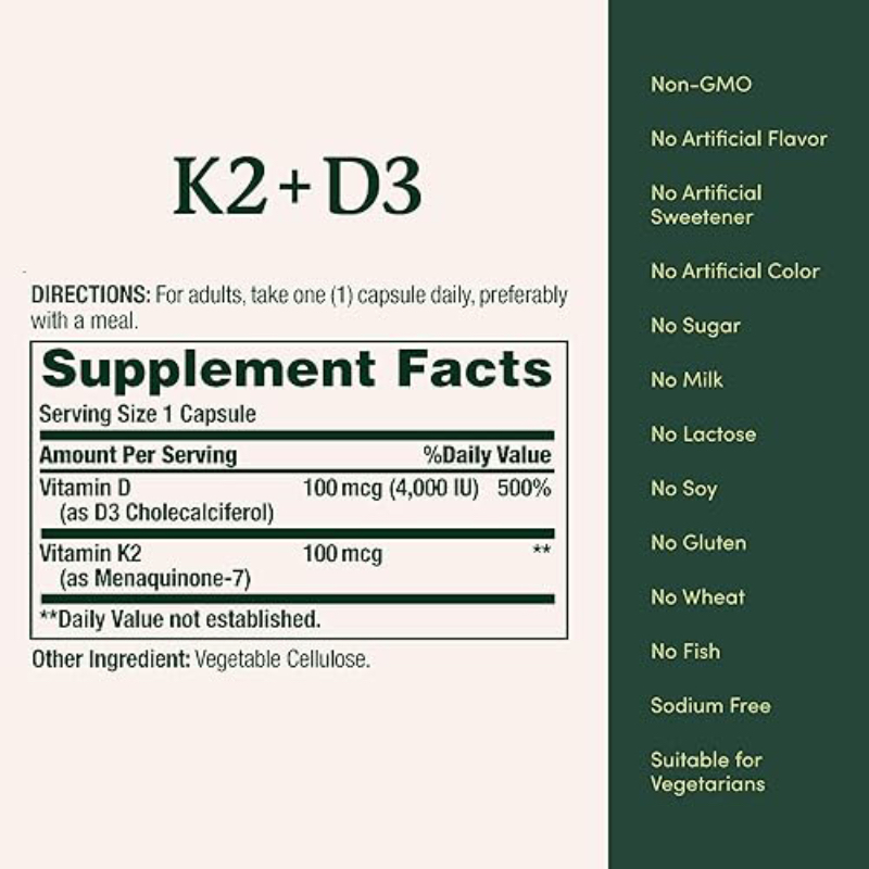 Muchos especialistas recomiendan consumir vitamina D3 junto con K2, porque mientras la D3 aumenta la absorción de calcio, la K2 ayuda a dirigirlo hacia los huesos, optimizando sus beneficios.