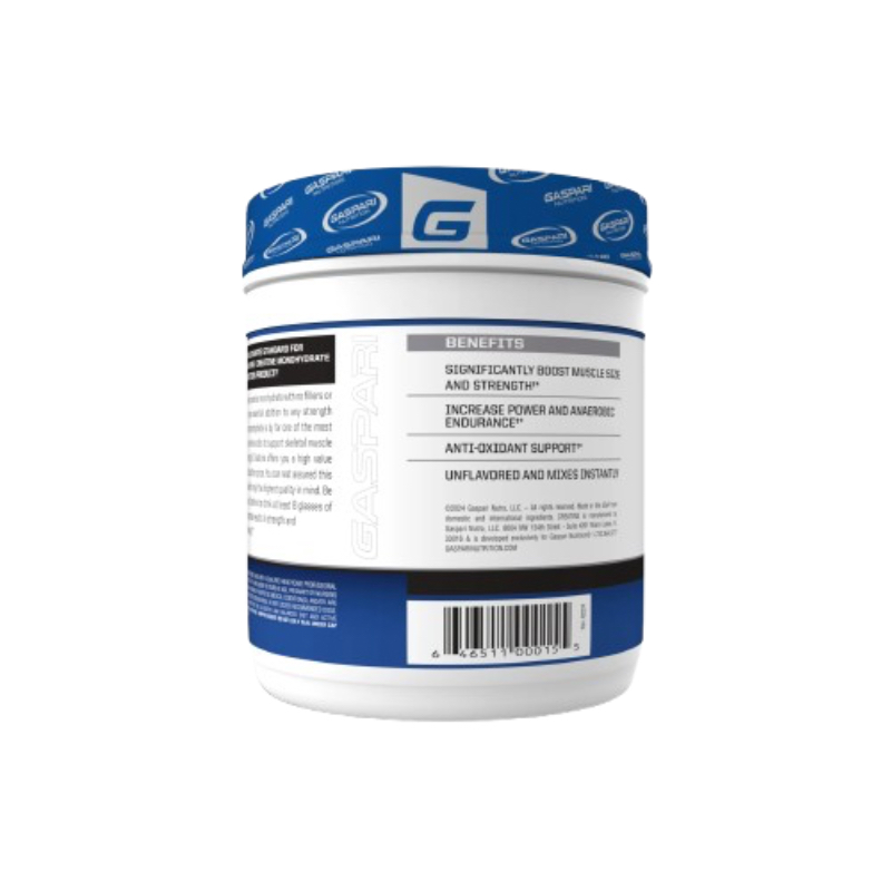 • Gaspari Creatine está hecho con monohidrato de creatina micronizada 100% pura, uno de los suplementos más investigados y efectivos. La fórmula micronizada garantiza una absorción rápida, una mejor solubilidad y la máxima eficacia, apoyando el rendimiento, la resistencia y la recuperación rápida.