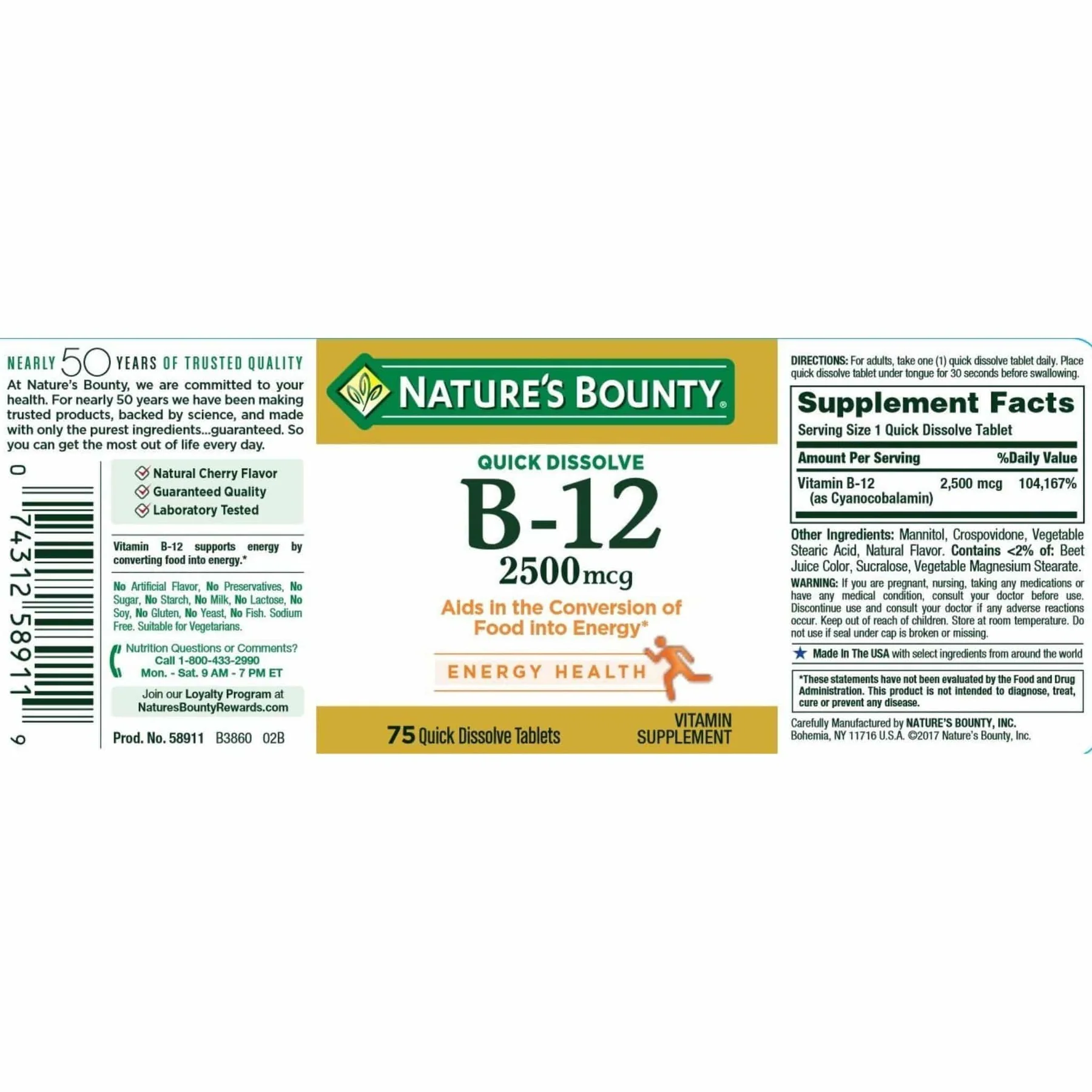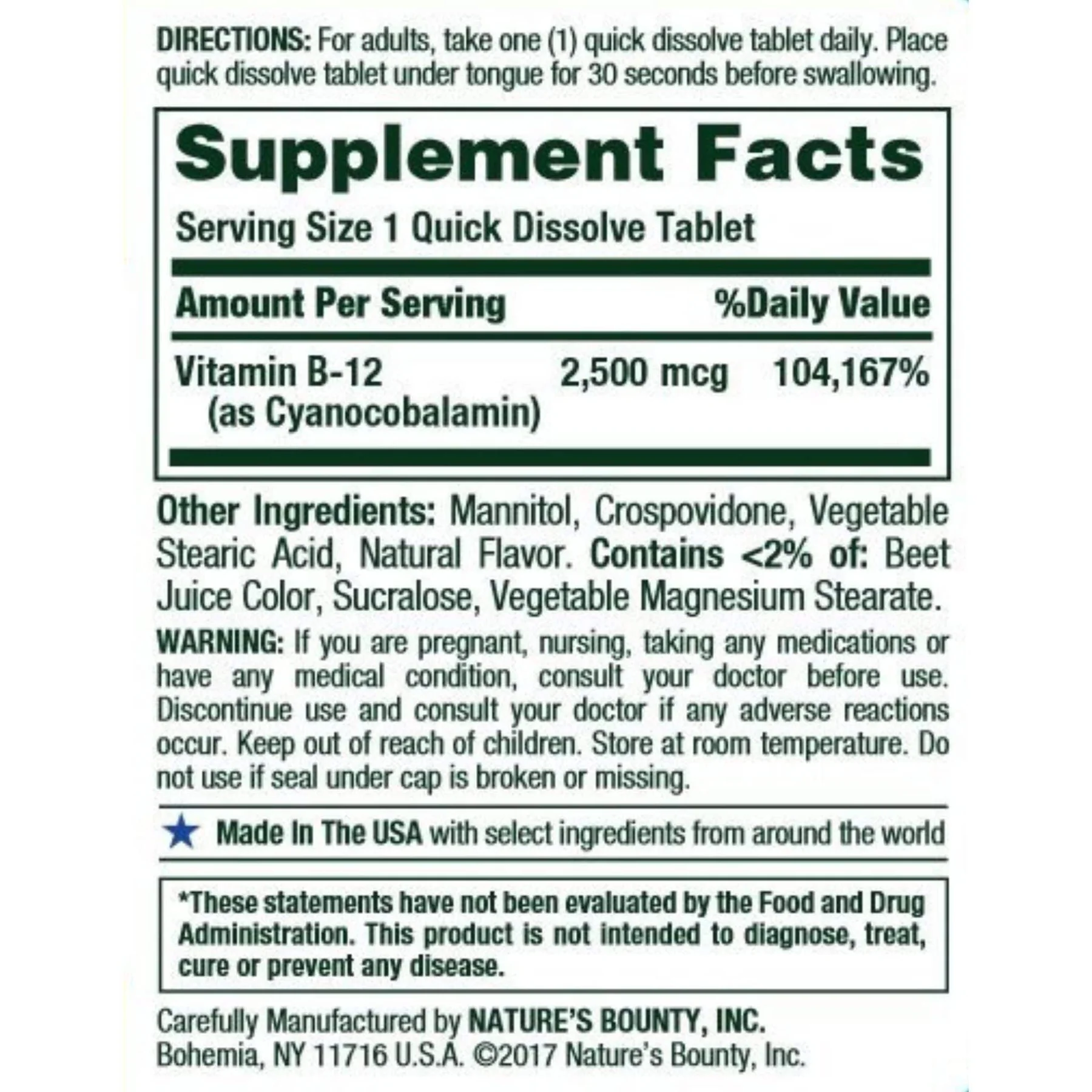 2500 mcg de vitamina B12 por tableta
